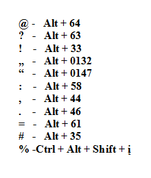 ![]() Klavišų kombinacijos