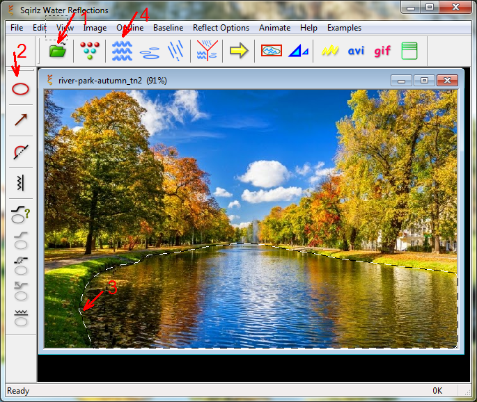 3.Apeiname visą vandens plotą spausdami kairiu.