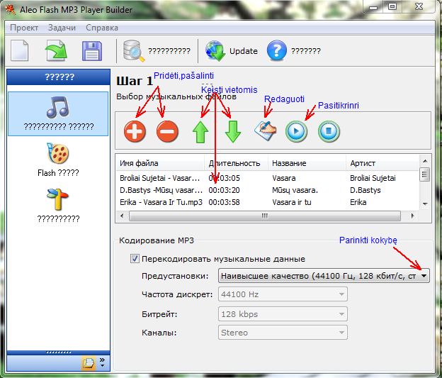 Playerių darymas Aleo Flash MP3 Player Builder programa